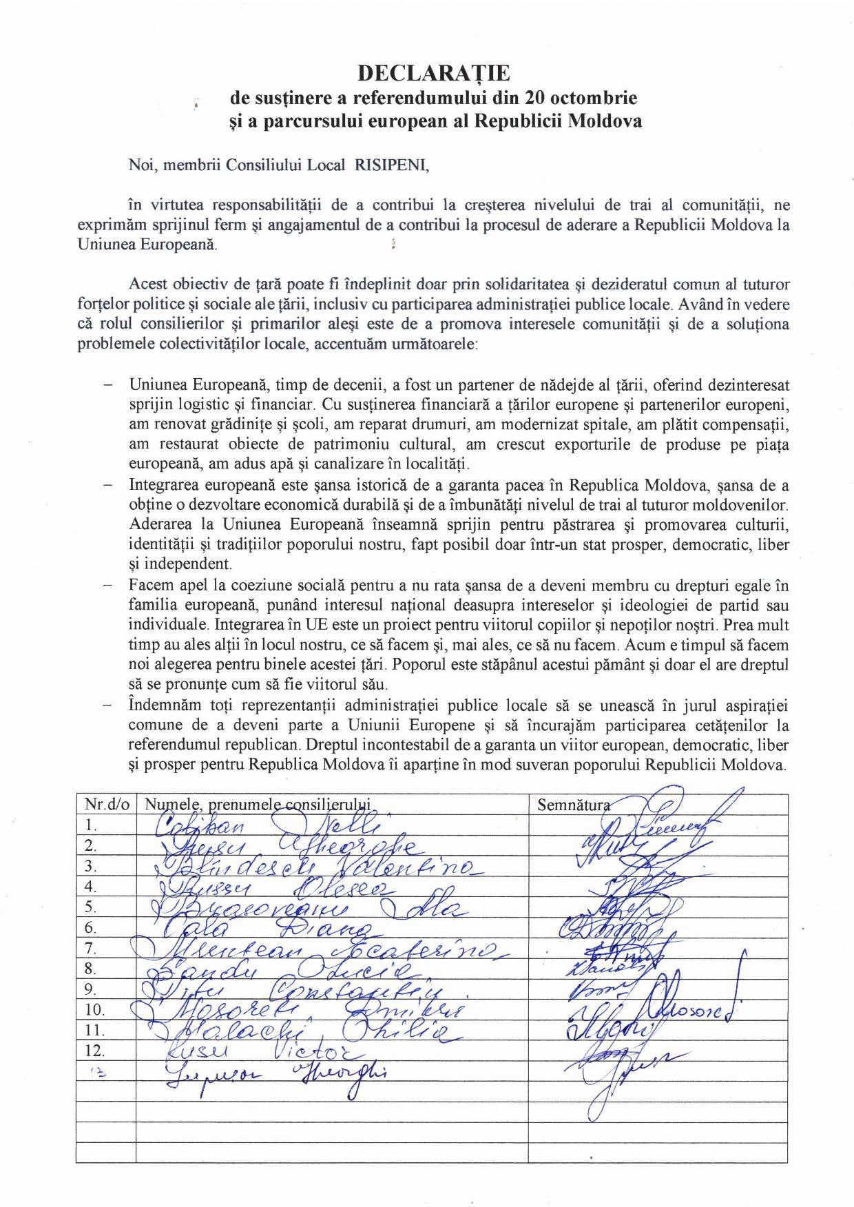 La festivitatea de semnare a contractului de delegare a gestiunii serviciilor publice de alimentare cu apă și canalizare au fost prezenți Vadim Roșca, președintele raionului Fălești, Ion Buzinschi, reprezentantul Cancelariei de Stat în raionul Fălești, Dmitri Mosoreti, primarul comunei Risipeni, Mihail Doruș, directorul general APAVITAL SA Iași, Ioan Stoian, directorul APAVITAL M, Nina Gașnaș, membru în Consiliul de Administrație al APAVITAL M, alți reprezentanți ai administrației publice locale.