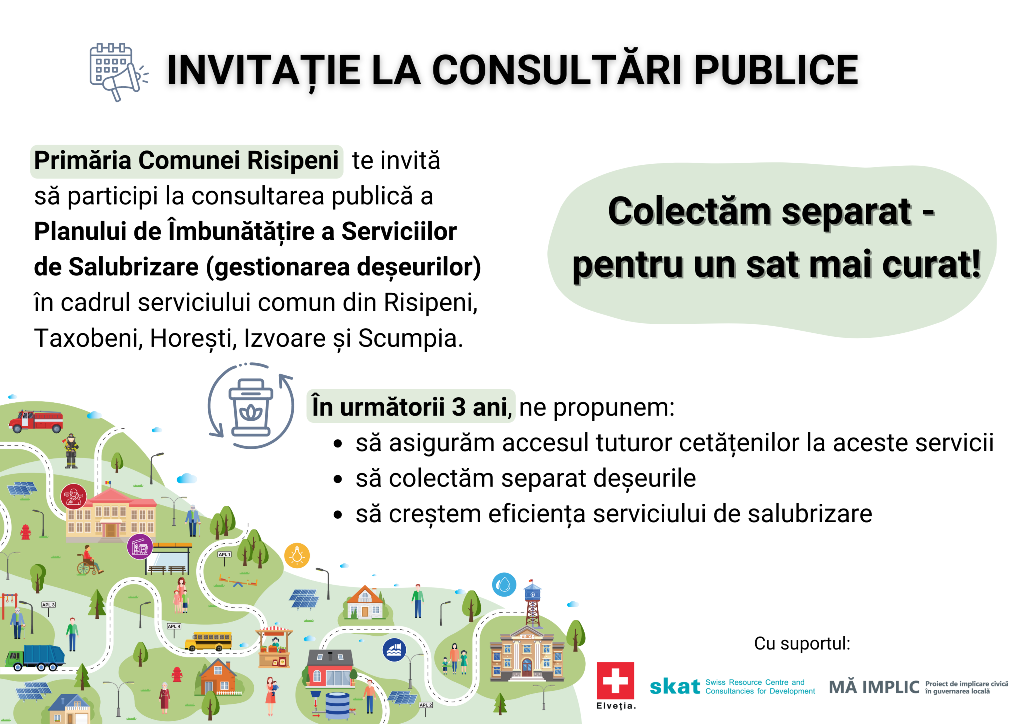 Anunț. Autoritatea Publica Locală inițiază consultații publice cu privire la „Planul de imbunatățire a serviciului de gestionare a deșeurilor”