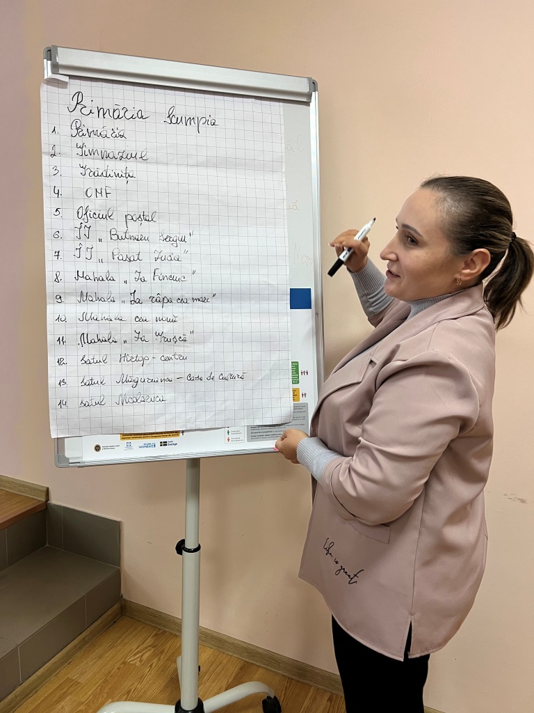 În cadrul ședinței a fost analizat si discutat progresul proiectului Mă Implic si Planul de Îmbunătățire a Serviciilor de Gospodărie Comunala, problemele comune ale comunităților partenere. Concomitent, participanții la ședința, moderata de coordonatorul regional al proiectului, au identificat si analizat cele mai eficiente practici si metode de consultare a cetățenilor. In rezultat, fiecare primărie partenera, împreună cu membrii echipei au elaborat Planul de acțiuni privind organizarea consultărilor publice al Planului de Îmbunătățire a Serviciilor de Gospodărie Comunala.